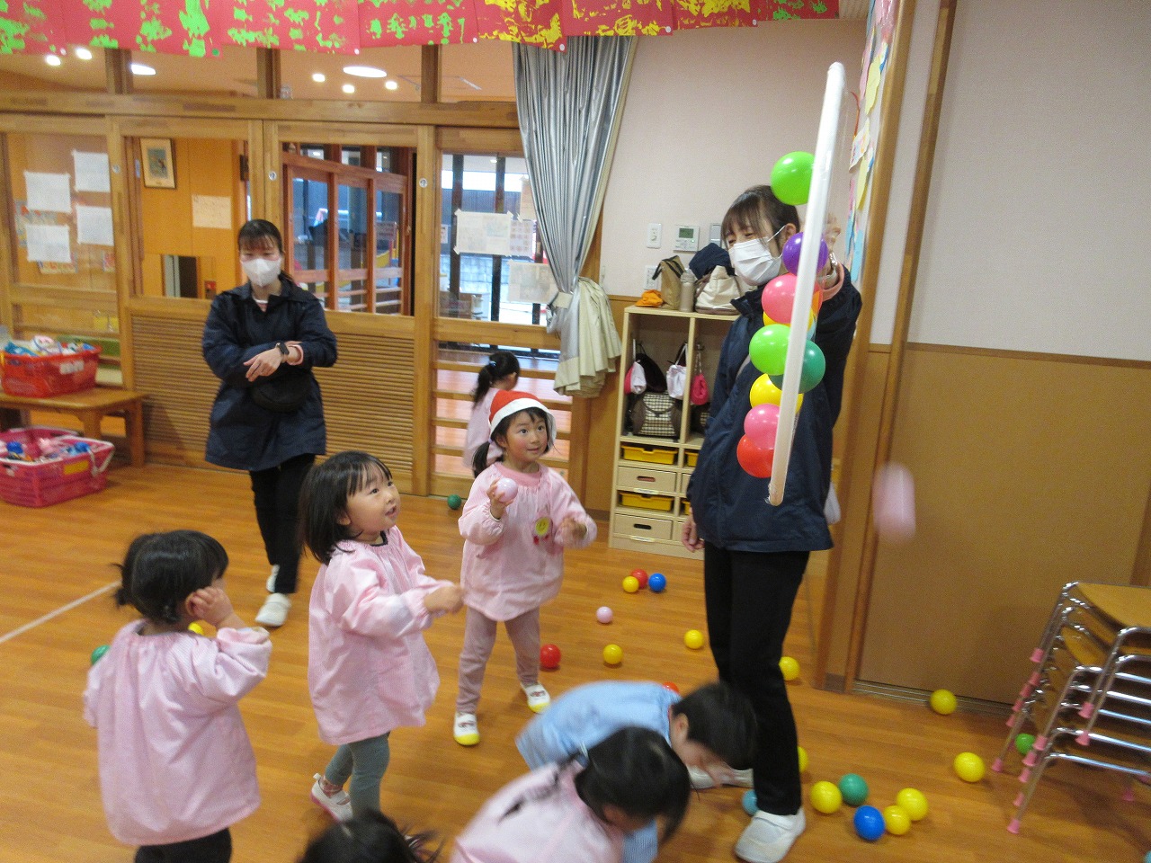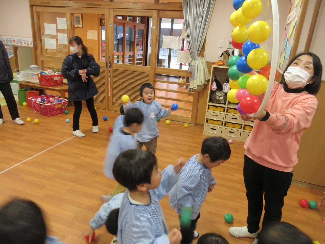 ボールをくっつけよう! お知らせ, かぶとくんのひとりごと, 園だより|25.12.17 フラフープの的をめがけて ボールをぽーん! 「くっついた!」 と大喜びの、2・3歳児さん たくさん くっつけようと頑張っていたよ。 関連 Share Share Tweet LINE RSS 0 « 大根ぬいたよ 12月生まれさんのお誕生日会 »