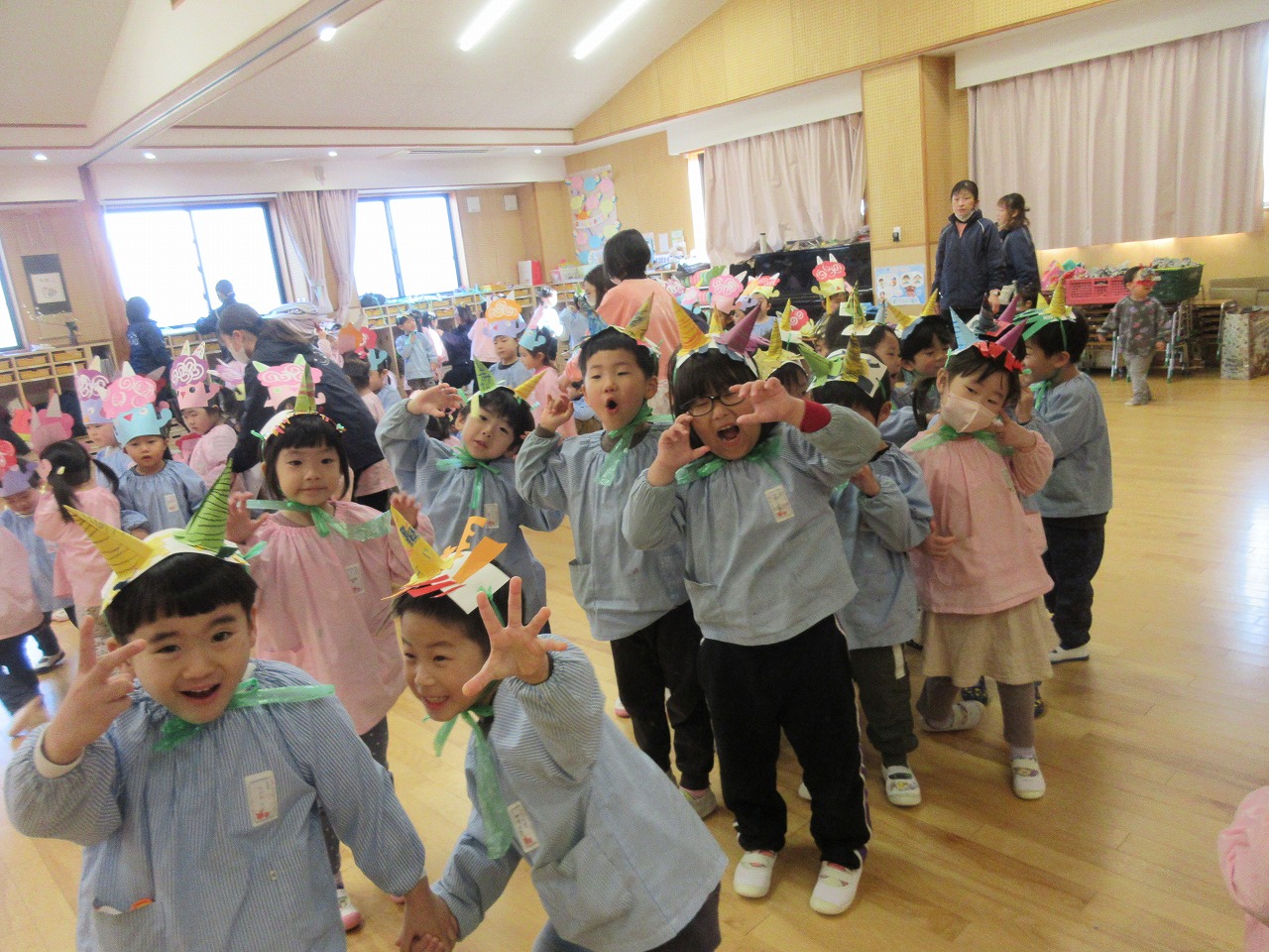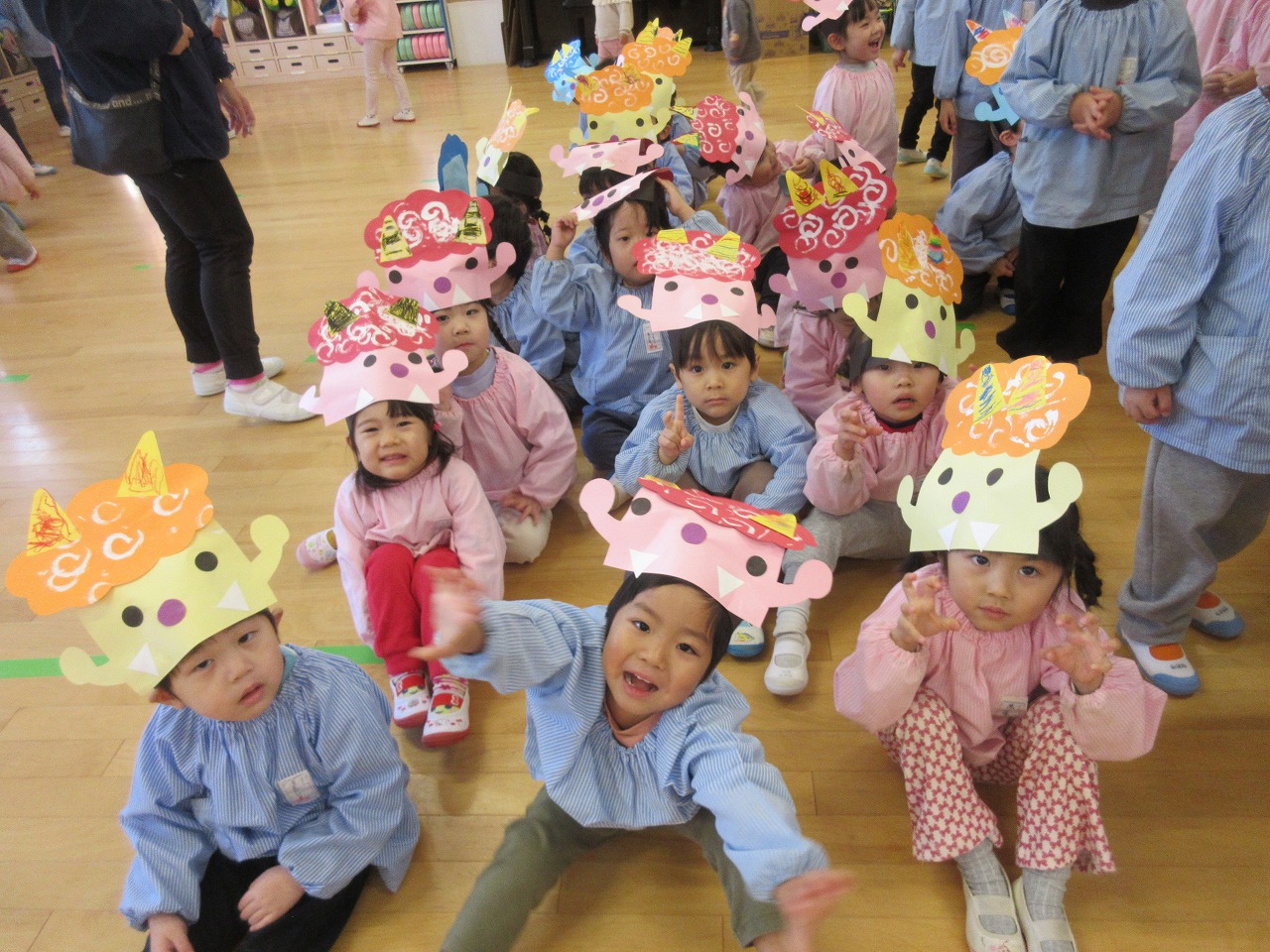 豆まきの前に… お知らせ, かぶとくんのひとりごと, 園だより|26.02.3 節分の日 みんなで作った鬼のお面をかぶって 集合! どうやって作ったのかを発表したり 歌をうたったり 豆まきについてのお話を聞いたりしたよ。 鬼になりきって ポーズしていたよ。 関連 Share Share Tweet LINE RSS 0 « ルールを作って 遊ぼうね お手紙あそび »