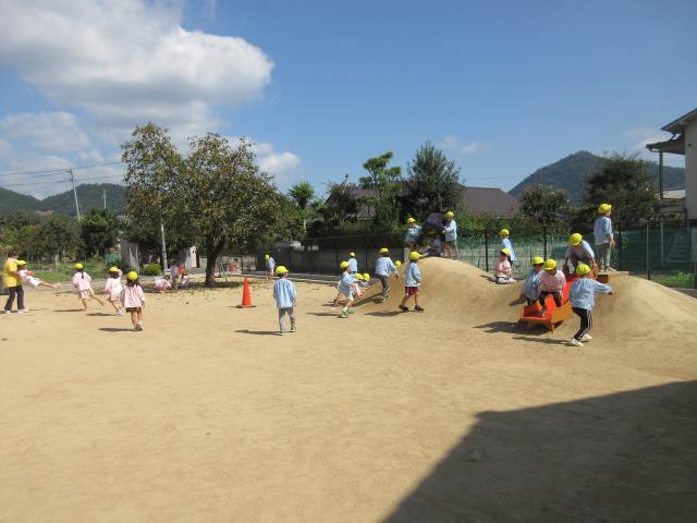 新しい園庭 お知らせ, かぶとくんのひとりごと|21.10.6 工事中の新しい園庭 今日は、お試しで遊んでみた子ども達。 「滑り台すべろう!」 「広いなー。かけっこするぞ!」 「山登り、できた!」 と、とっても楽しそうだったよ。 早く完成するといいな。 関連 Share Share Tweet LINE RSS 0 « ペープサート 令和3年10月6日 欠席者数 »
