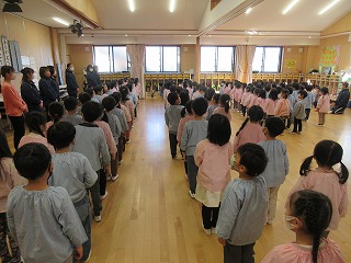 3学期がスタートしました。 お知らせ, かぶとくんのひとりごと|23.01.10 みんなで、始業式 挨拶と共にに始まった3学期 色々なことをして、元気に楽しい学期でありますように! 関連 Share Share Tweet LINE RSS 0 « 令和5年1月10日 欠席者数 新しいお友だちと園内めぐり »
