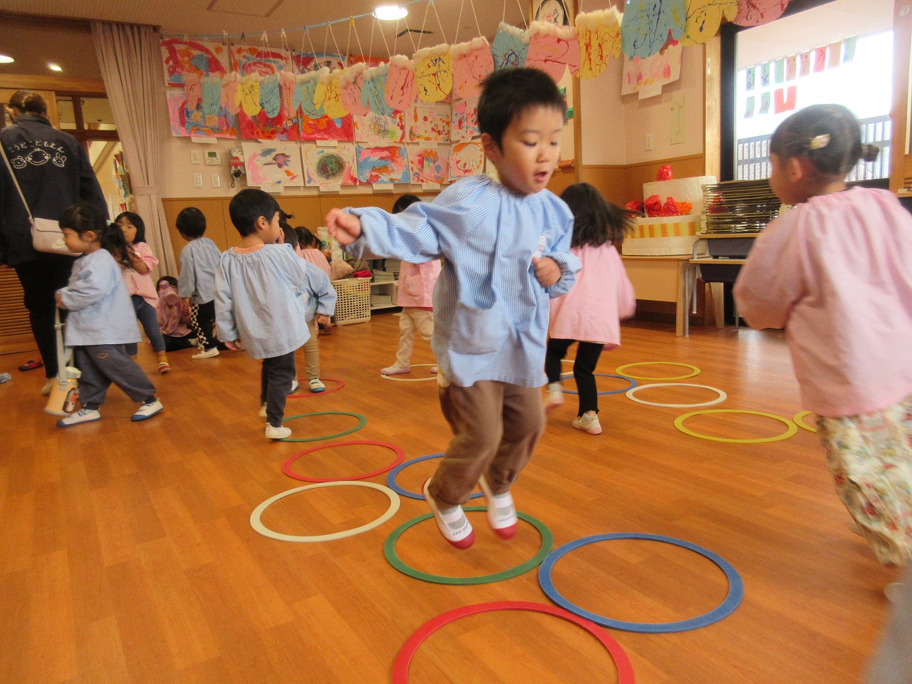 フラフープを並べて ジャンプ!