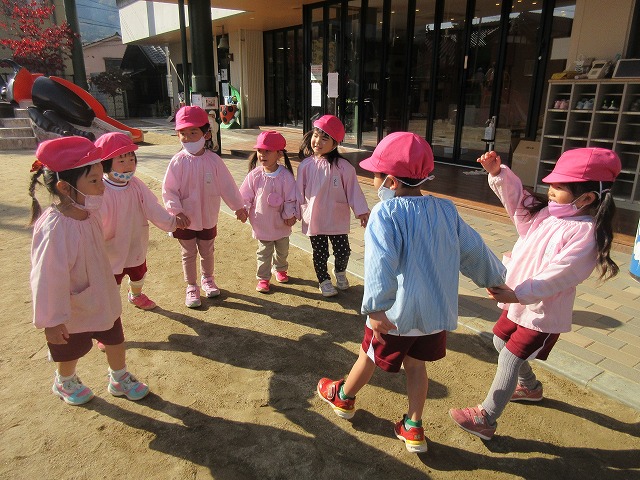 みんなで手をつないで、楽しそう。