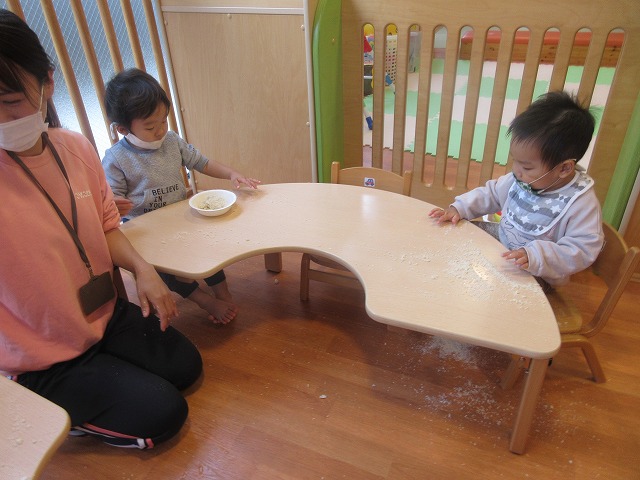 気持ちいい感触に楽しそうな0・1歳児さん