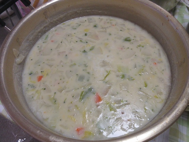 メニューはシチューと白菜の和え物