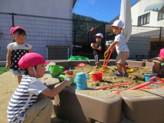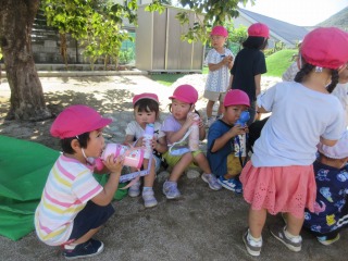 園庭の柿の木の下やお山で