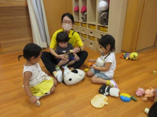みんなでおもちゃで遊んでいる年少さん