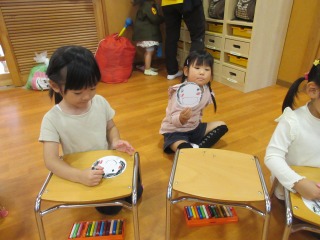 年少・2歳児さんが何かを作っているよ。