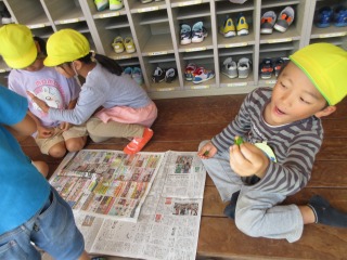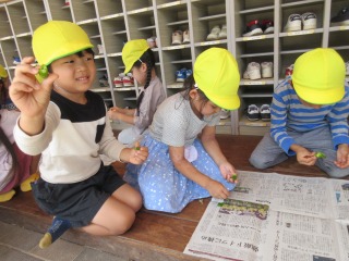 ちぎって中を観察した年長組さん
