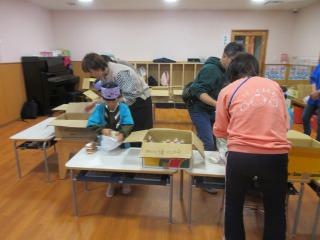 まずは、ホールで歌をうたったり、ゲームをして遊んだよ。