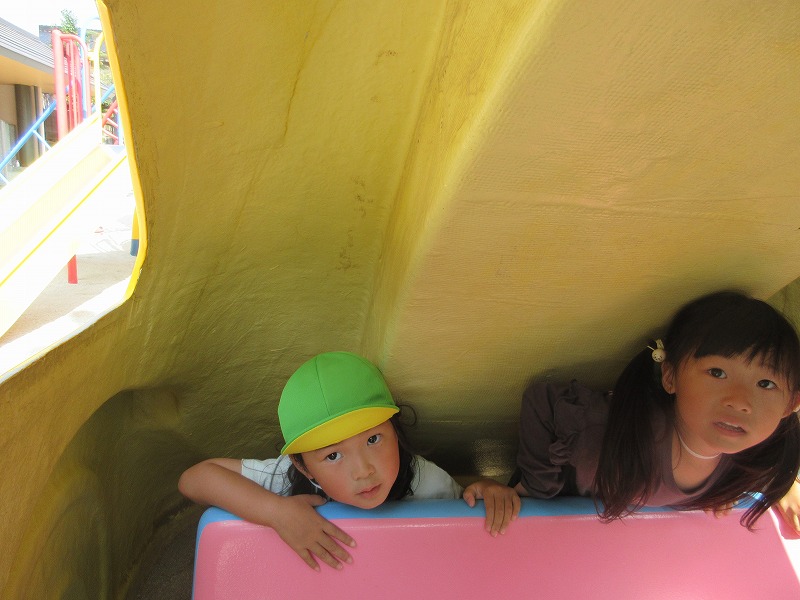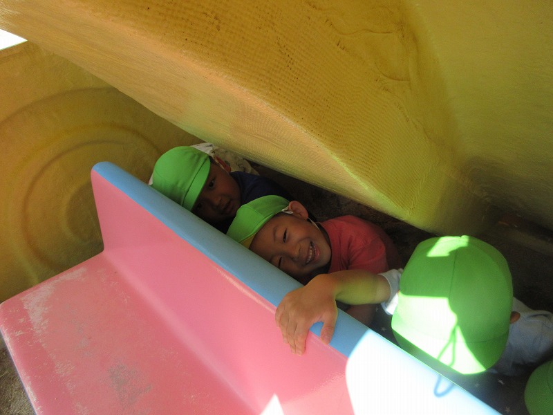 園庭で かくれんぼをした