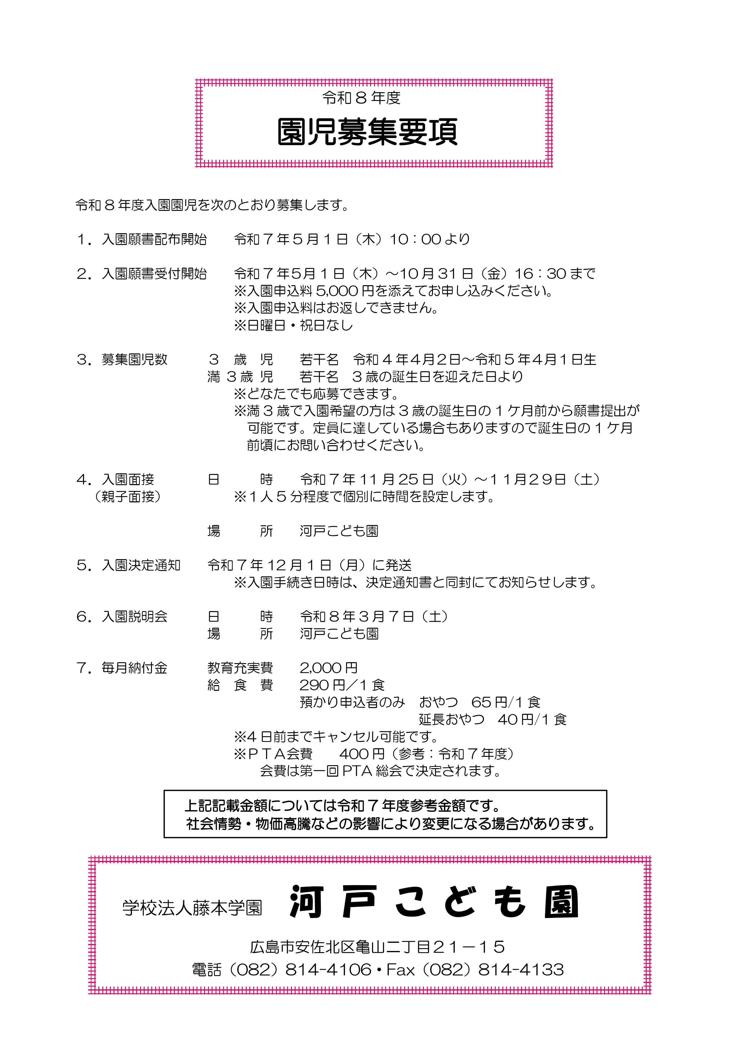河戸こども園でのびのびとした教育と保育をはじめませんか。